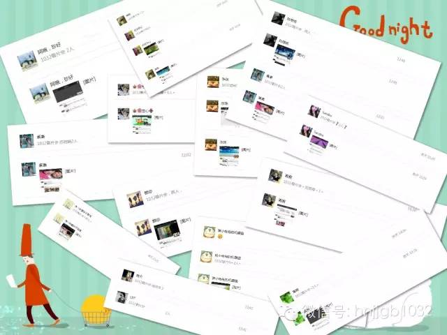 骑小电电的机器猫;白夜;周末小树;黄楠;Sandra;昂嘎;等等等等;阿哦珍好;棒棒糖;甄小渔;刘筱亭。(微信名)