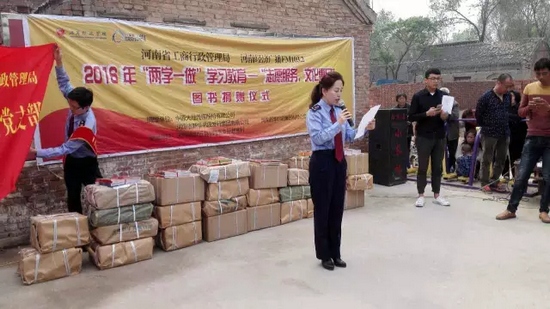 今天,河南省工商局联合河南经济广播FM1032开展“两学一做”志愿服务文化惠民图书捐赠活动,来到封丘县荆隆宫乡孙蔡寨村。