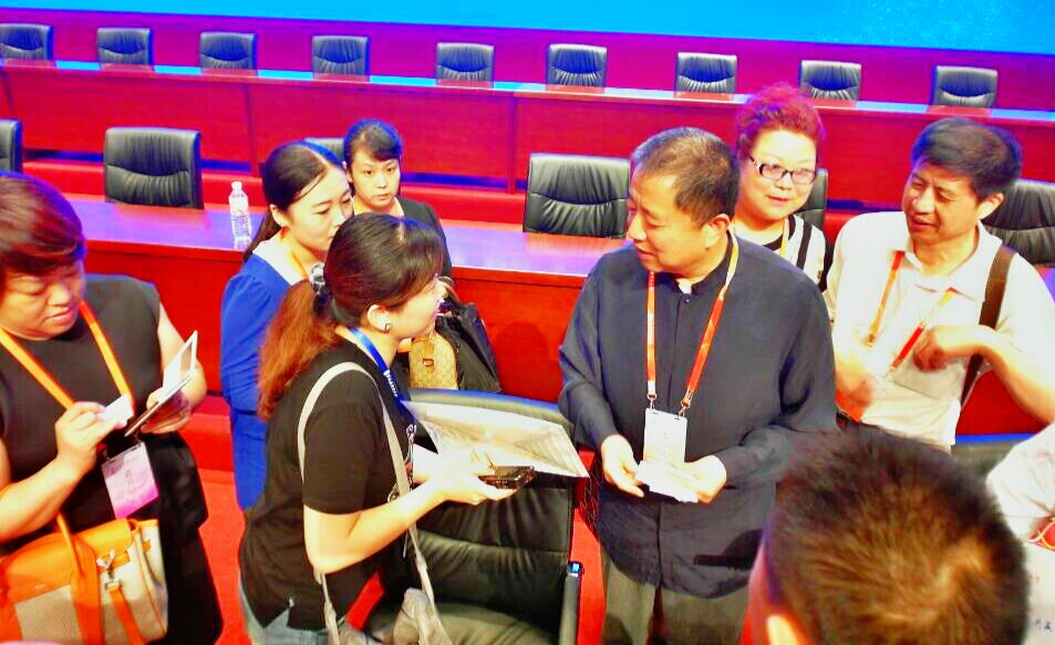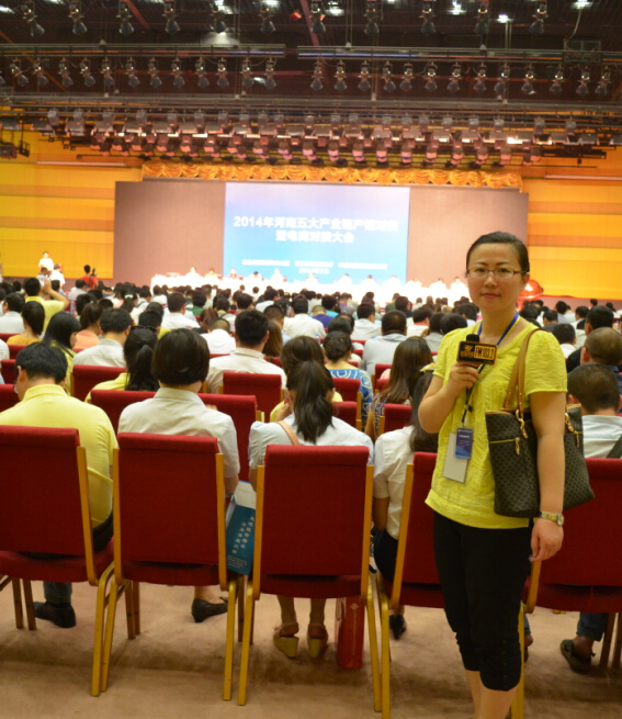 2014年第九届豫商大会上,我正在采访河南建业集团主席胡葆森。2014年,我紧扣经济工作主线,共采访报道100多位企业界人士和相关专家学者,为河南经济发展宏扬正气、传递正能量!