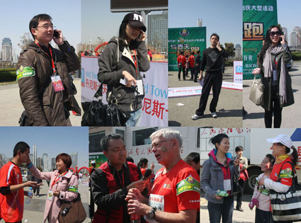 在历时四个小时的直播过程里,现场大型直播车就像漂浮在旗帜和人群大海洋中的帆船,颠簸在声浪中的现场主持人与主直播室的主持人默契配合,共完成与现场记者连线20多个,分别邀请了郑州市副市长刘东、1041跑友团、冠军选手、情侣马拉松参赛者、志愿者等嘉宾走进现场直播车,就全民健身的话题进行沟通、交流、分享。而守候在多个点位的15名现场记者用手机连线的方式,为听众传递出赛场激昂的心跳声、沸腾的欢呼声,并通过电波飞扬在春天里,弥漫在春风中!