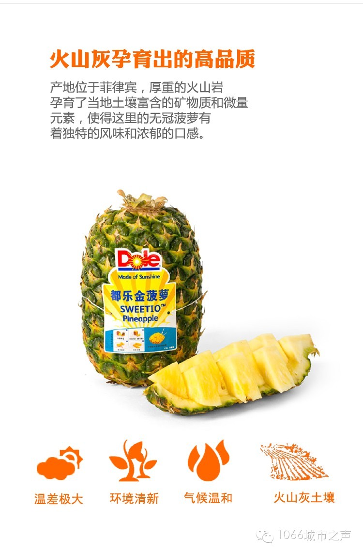 1、都乐金菠萝一颗。无需挖眼,无需滲盐水,口感酸甜,果肉细腻浓郁,营养丰富。