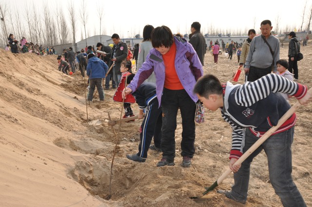 植树节前夕,教育广播带领20组听众家庭,来到黄河岸边种植树苗。一到达种植地点,面对大片的沙漠化土地,教育广播总监张建功谈起了这次活动的初衷,“举目望去,周围全是沙滩,可以想到很多沙漠化的土地。我们教育广播有责任让孩子知道,爱护我们的家园从小做起,从我做起,从种植每一颗树苗做起。”20组听众家庭将一颗颗充满希望的果树苗和自己的心愿卡一同种下。家庭代表说,“这个活动非常有意义,能够让小孩子跟小树一起成长,把这心愿埋到树下面。在他成长过程中有一个这么好的回忆,我们觉得非常高兴。”