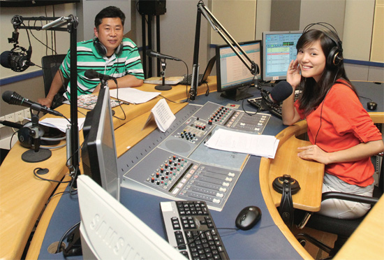 东方今报记者袁晓强(左)在河南电台教育广播《娱乐晚自习》之“职场好榜样”栏目中畅谈自己的职场经历