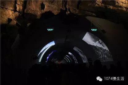 演出结束后返回停车场的路上,意外发现了这条隧道,抬头看,满满的全是感动,里面几十台投影仪滚动投放着当年纤夫的黑白影像照片……