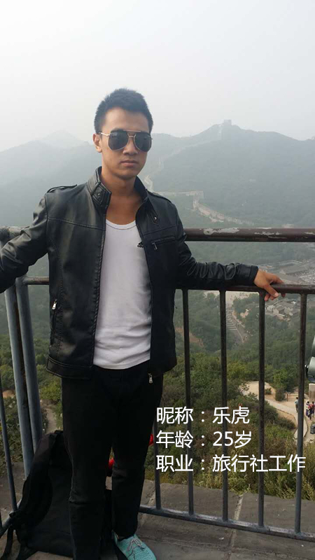 大家好,我是乐虎,今年25岁,老家永城的,现在在郑州居住。12年大学毕业,然后参军两年,现在在一家旅行社工作,我平时跟同事相处融洽,我的性格比较稳重,随和,大家都愿意和我相处。平时,我喜欢锻炼身体,看书。我的感情经历比较多,但是都不太深入,说一下最近的一次经历吧,应该有自己的原因和现实的原因,最后没能在一起。我喜欢的女生类型,就是孝顺一些,懂事一些,对性格没有太多的要求,这个靠感觉。另外,我希望她身高在163-170之间,大专学历,20-25岁之间。当然,一个家庭的维系需要两个人的共同努力,更需要男人担负起生活的责任。所以我愿意为你遮风挡雨,共同面对生活的苦与乐,一路相伴相随,我期待遇到真诚的你。