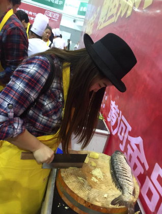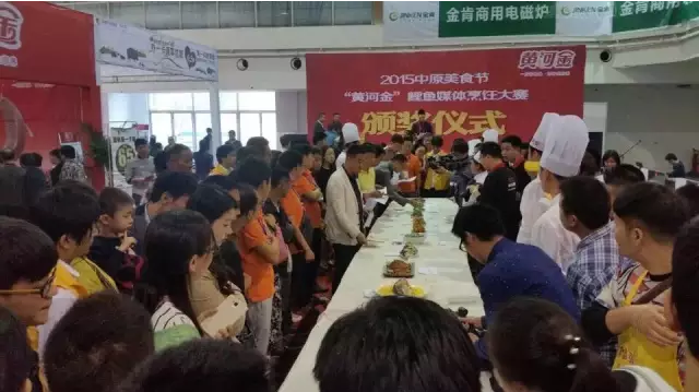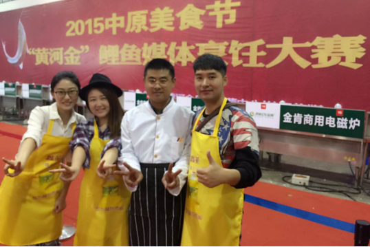 10月18日上午10点,中原国际博览中心会场内,作为“2015中原美食节”的重头戏,“黄河金媒体烹饪大赛”正在火热进行。会场内来自省内的11家媒体,共计14个小组,跨界秀了把厨艺,将一条条鲤鱼烹出了新意。