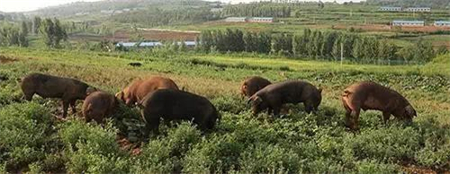 “雏鹰农牧集团在三门峡包下40万亩地,散养生态猪。和传统的“格子饲养”不同,他们轮牧放养,地上还种有瓜果、苜蓿等猪能进食的草本植物。猪每天在户外八九个小时,听音乐、晒太阳、喝泉水。等到要屠宰的时候,采取国际先进的二氧化碳致晕技术,猪就不知不觉死亡了。与传统的电击比,导致的伤害更小,猪因为应激反应残留在肉中的有毒物质也不会那么多。“养的就是‘全世界幸福的猪’”。