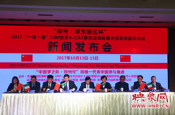 今天(8月25日),2017“一带一路”世界X-CAT摩托艇锦标赛郑州赛事新闻发布会召开。记者从该发布会上了解到:10月13日至10月15日,“郑州·郑东新区杯”2017“一带一路”UIM世界X-CAT摩托艇锦标赛中国系列赛郑州站大赛将在郑州东区龙湖举行,这是郑州第一次承办如此高水平、高规格的水上极速项目,届时来自世界各地的13支顶级动力艇队将为郑州市民奉献上一场精彩的视觉盛宴。