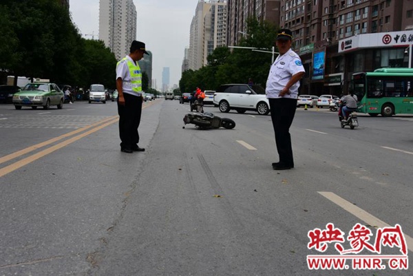9月5日中午,郑州市福元路上,一名初中男生骑电动车送女同学回家。当其由西向东行驶至福元路与凤台路交叉口时,疑与一辆在路口左拐的出租车发生碰撞。电动车失控倒下,女生从后座重重倒地,头部、脸部受伤,全身抽搐,昏迷不醒。