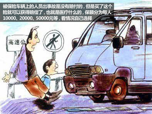 被保险车辆上的人员出事故是没有赔付的,但是买了这个险就可以获得赔偿了,也就是医疗什么的,保额分为每人10000、20000、50000元等,看情况自己选择。
