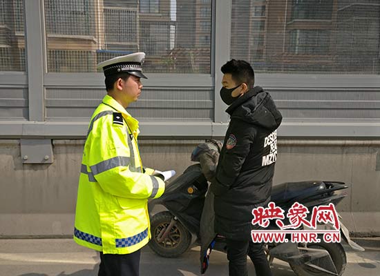 民警拦下一辆违法行驶电动车