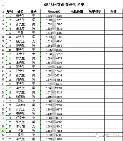 接受问卷调查访问的车主,每个人都有机会获得周五的抽奖活动,被抽中的每人将获得价值100元的卡吉诺蛋糕免费券,以下为中奖名单,快看看有你木有: