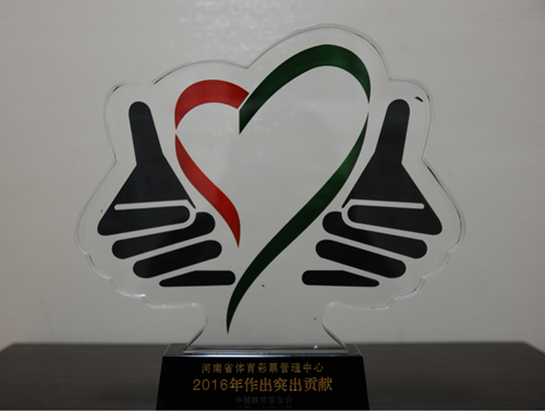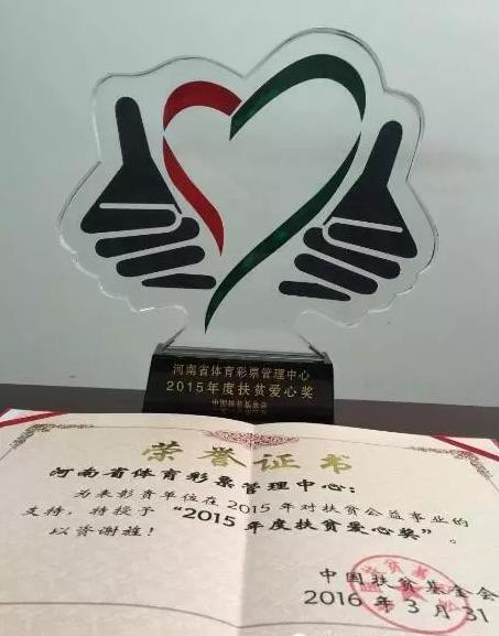 河南省体彩中心被中国扶贫基金会授予“2015年度扶贫爱心奖”