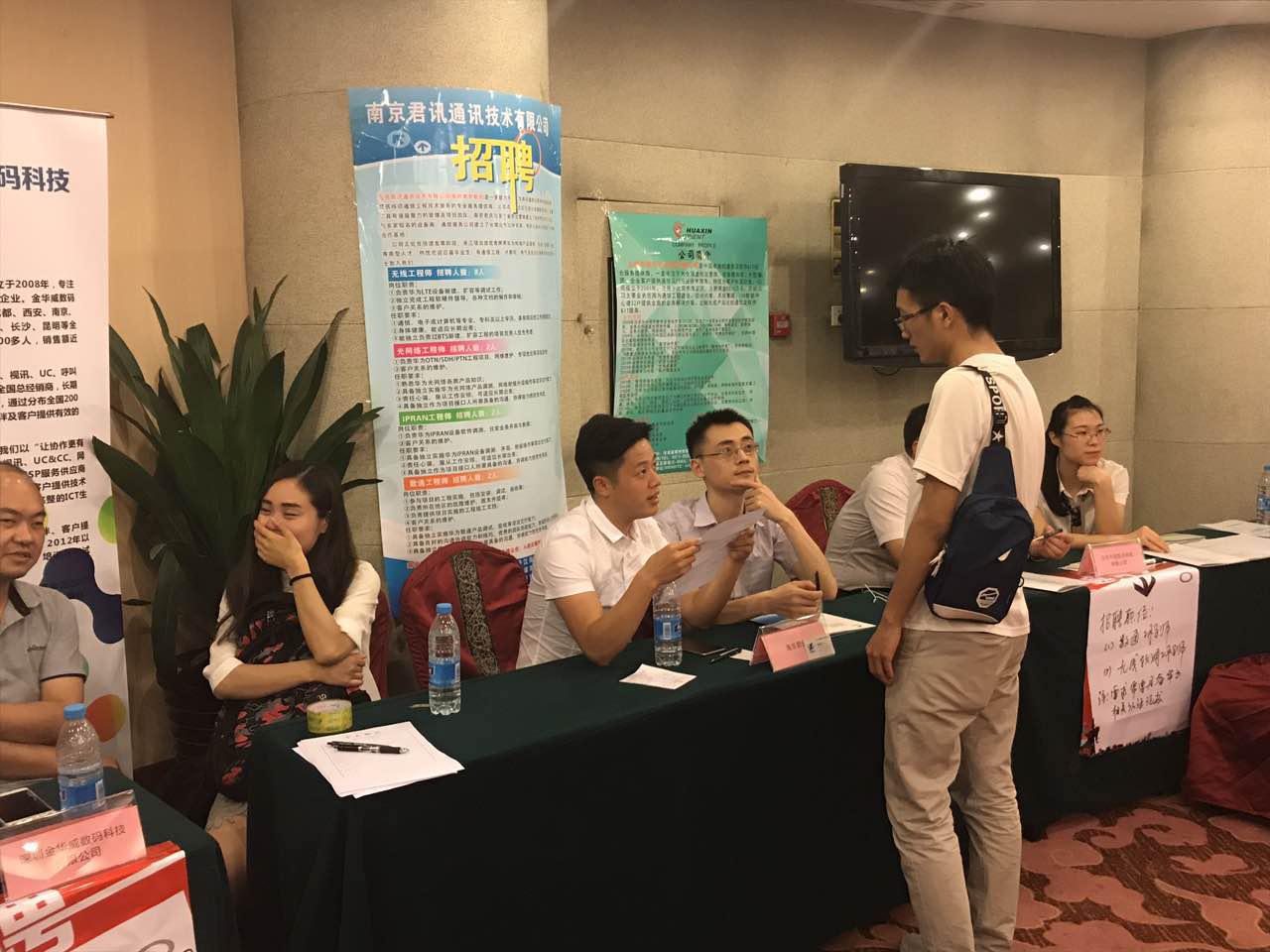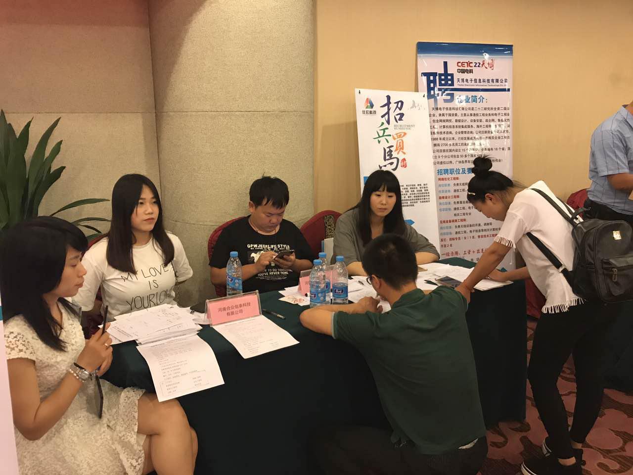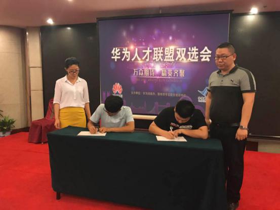 现场的企业、学生通过面对面交流,进一步深入的了解之后,直接达成共识,现场签约,学生在刚出校门就被企业选中,进入好的平台提升学习,实在是一件幸事,企业在上百人中挑到合适、满意的人才,也是不易。达到了企业寻求人才,人才寻找岗位的双赢,实在可喜可贺! 华为2017河南区人才联盟双选会现场签约单位:神州数码信息股份有限公司、郑州华商电子科技有限公司、陕西瑞达沣通信技术有限公司、河南省高校新技术有限公司、郑州华尊信息技术有限公司等华为生态合作伙伴!