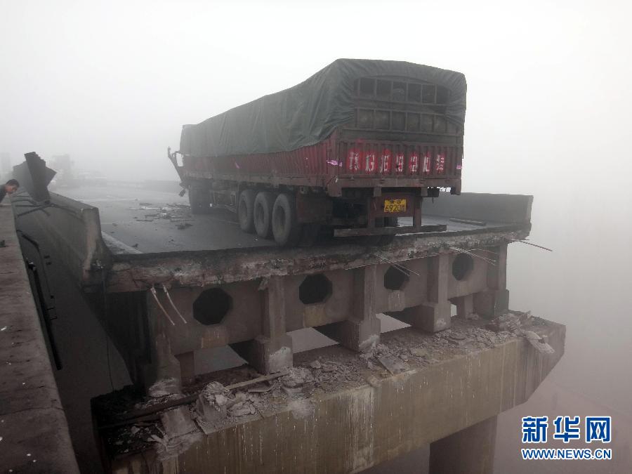 河南三门峡,2013年2月1日,连霍义昌大桥被炸坍塌被炸坍塌,多辆载有人员的车辆坠桥。