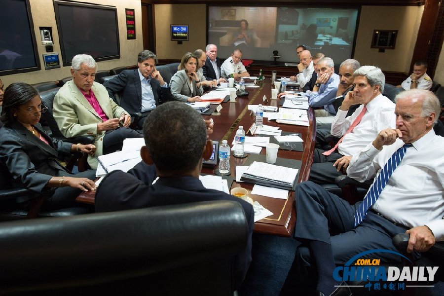当地时间2013年8月31日,美国华盛顿,美国总统奥巴马在白宫与国家安全顾问团队讨论叙利亚问题。