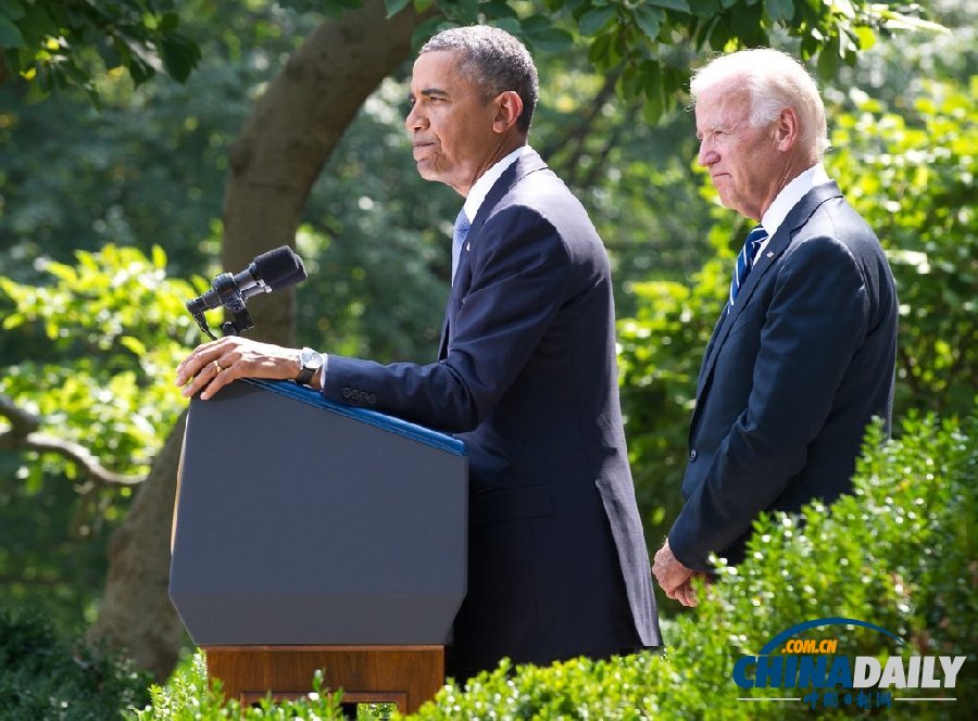 当地时间2013年8月31日,美国华盛顿,美国总统奥巴马在白宫玫瑰园发表最新声明,宣布确定美国将对叙利亚发起军事打击行动。奥巴马称,美国将在国会授权后再军事打击叙利亚。