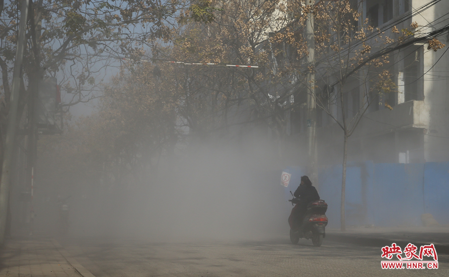 映象网讯 (记者 段晋哲 实习生 宋亚楠 文图)12月4日上午,记者从郑州市文化宫路路过时发现,伊河路与颖河路之间二百多米的文化宫路扬尘弥漫,能见度不到5米。许多路过的市民都是捂着嘴匆匆跑过,一些车辆也只好缓慢通过。据旁边的商户介绍,这段路的扬尘主要是因为文化宫路伊河路交叉口东南角的一处城中村拆迁,施工方除了在路边竖立围挡外,没有采取其他的防尘措施造成的。一位王姓市民向记者反映,“这样的状况已经持续十几天,道路两边的生意都收到了很大影响,特别是放学从此路过的孩子们最受罪。”为了城市的发展,工地施工是不可避免的。但是做好一定的防尘措施,也是营造良好生活环境,施工方必须做的工作。记者希望施工方能科学施工,给周围市民造成的影响降到最低,让城市上空的蓝天白云多出现在我们生活当中。
