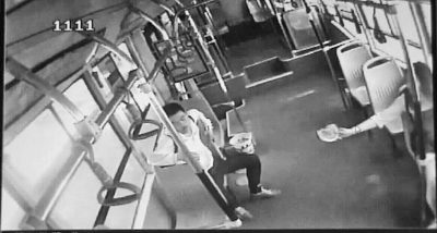 昨天,这一幕被186路公交车的监控录像完整地记录了下来。记者从该监控中看到,二人上车的时间是昨天上午8点38分,其中,男孩身着绿色上衣,女孩穿着粉红色上衣。二人上车坐定后,女孩隔着走廊给男孩递西瓜。之后二人坐在了一起,女孩开始喂男孩吃西瓜。十几分钟后,二人拎着吃剩的西瓜下了车,而将瓜皮留在了车上。公交车上的垃圾桶,仅距二人不到2米远。