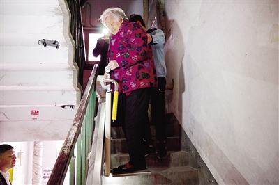 杨大妈家住二楼,楼栋建于20世纪90年代,没有安装电梯,且楼道狭窄、昏暗。随着年龄的增大,她腿脚不灵便,偶尔下一次楼,不仅需要人搀扶,而且每上下几个台阶都要歇上一歇,如果下楼过急,还会出现头晕目眩,这一系列“上下楼综合征”让杨大妈只能望楼生畏,经常蜗居在狭小的房间里。