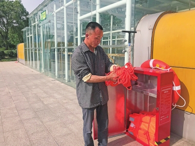 “我们所有的保安队员必须会凫水。”昨天,正在巡逻的保安队员尚群山接受记者采访时说,他们上岗前接受过救生培训,发现有人溺水,就会就近使用救生圈或竹竿、长木棍,以及绳子等工具施救,另外,附近还有几艘小船备用。