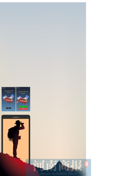河南商报对比两款小程序发现,首页都是一个中国地图形状的天安门城楼照片,第二页由用户自己点击去过的地方,两者都在第三页生成一张灰色中国地图,整个过程的页面设计几乎一模一样,只有按钮颜色等细节不同。