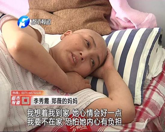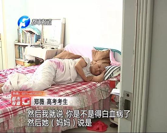 原来,今年4月,郑薇的妈妈李秀霞经常感觉少气无力、身体不适,到医院一查,竟然是急性白血病。眼看女儿再有一个多月就要参加高考,夫妻俩共同决定:瞒着女儿去治疗。