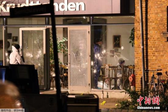 当地时间14日晚和15日凌晨,丹麦首都先后发生两起枪击案,造成两人死亡,五人受伤。图为丹麦咖啡馆枪击案现场。