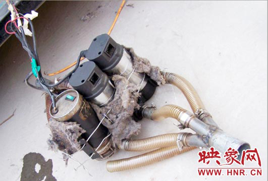 经过改装后的简易抽油泵,功率很大,满满的一箱柴油(大约400多升)三分钟左右被抽的光光的。