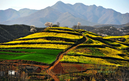 从荥阳市区出发,沿着万山路、省道、环翠峪旅游大道组成的路线,大家不仅可以欣赏到油菜花铺就的金灿灿地毯,还可以走入浸染的起伏山陵,体验农民的幸福生活。