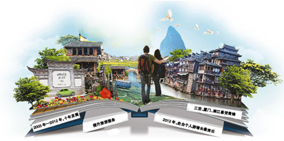 同时,中国旅游市场正在迎来出境自由行的新时代,出境旅游者中散客自由行比例超过70%。中国游客主要选择香港、澳门、首尔、新加坡、台北、东京等旅游都市,以及普吉岛、马尔代夫、巴厘岛等海岛目的地。以内地赴港澳旅游为例,自由行在总体游客中比例超过2/3。而赴台个人游在2012年增长幅度最突出。