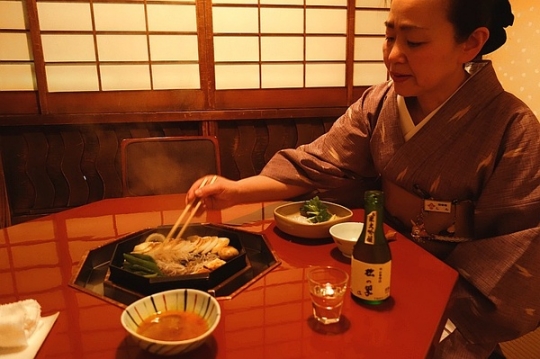 ▲单人在一间和式房间用餐,有专门的服务员来做寿喜烧