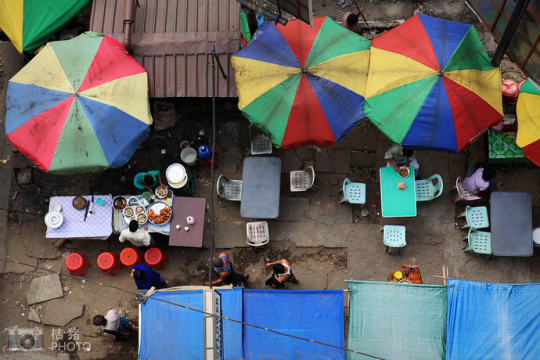 ▲仰光的街头小吃摊,立于街边,条件简陋。