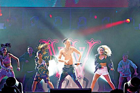 北京时间11月22日消息,据香港媒体报道,近年在内地大红的陈伟霆[微博]前晚在广州天河体育馆举行“女皇派对”,11月21日生日的陈伟霆与粉丝庆祝迎“三十而立”,现场5000多个座位,座无虚席,全场爆满!分手后的陈伟霆今年生日不愁寂寞,有大批粉丝陪庆生,又上台为他伴奏伴舞,寿星仔陈伟霆 high到脱去上衣大秀肌肉,引得粉丝们尖叫声连连。