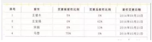 2016年3月25日的第一次变更,马蓉的股份全部不见,王宝强成为大股东,宋喆被加进来,占股13%。