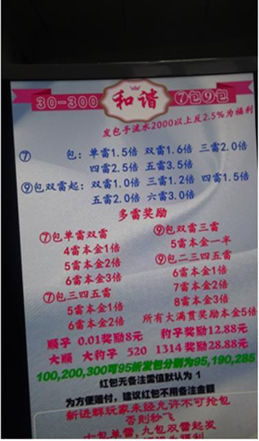 10月11日晚8时许,咸安公安分局治安大队民警在对旅店业进行巡查时,发现该区一酒店1316房间住宿人员曹某、刘某、殷某、骆某等4人行迹可疑。经对其随身物品进行检查,民警发现他们在电脑上利用QQ群抢红包设置“中雷”的方式组织人员进行赌博,其所建立的“和谐家园30-300多雷群”成员达200余人,涉赌金额巨大。