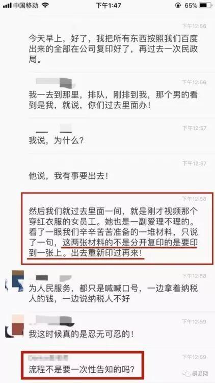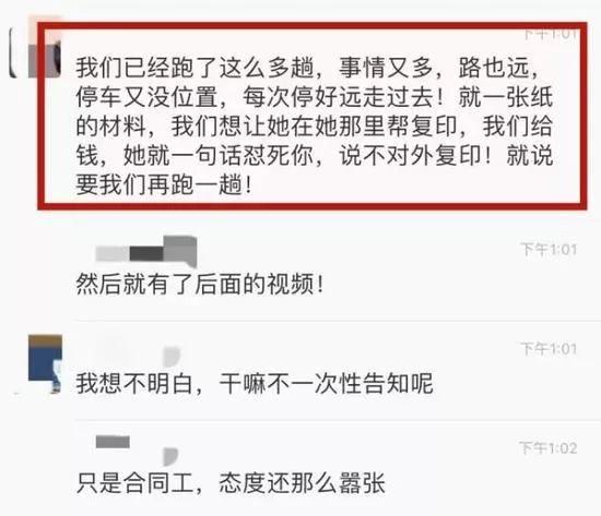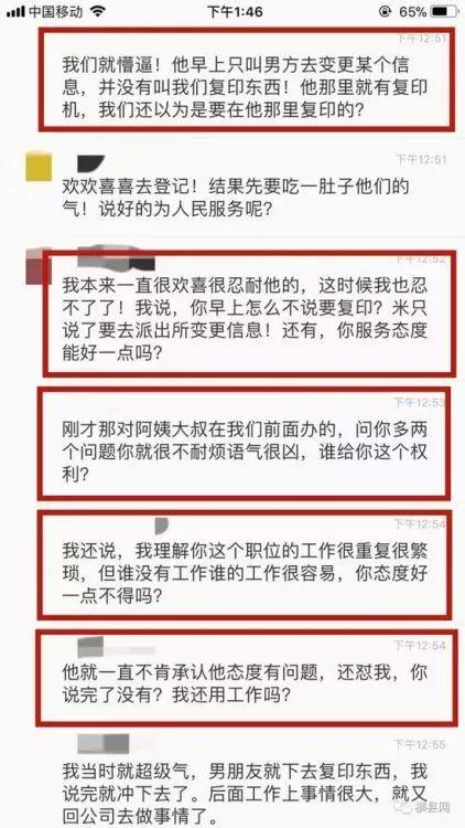妹子就很火大,一来是态度实在是差到不能忍,二来是需要什么材料能不能一次性说清楚?让办事群众跑来跑去,还要理直气壮地说办事的群众没准备好材料。