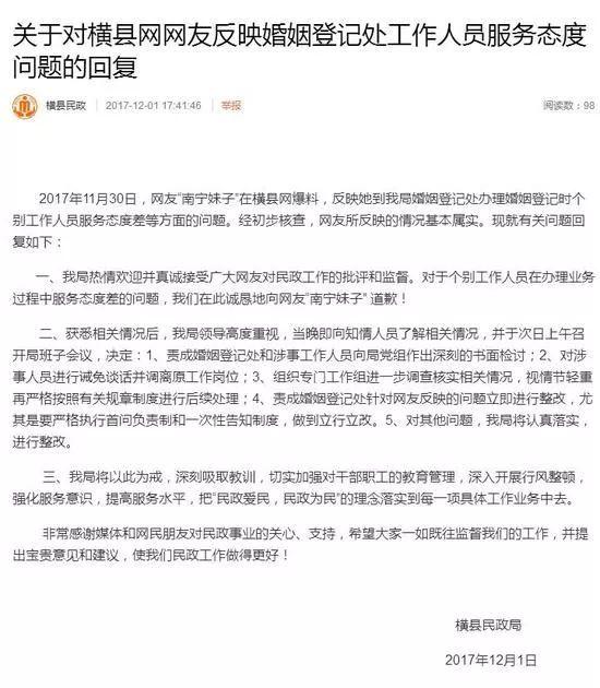 11月29日上午,妹子和男友欢欢喜喜地去横县民政局婚姻登记处办理结婚登记,开始了一段奔波不停的糟心经历……