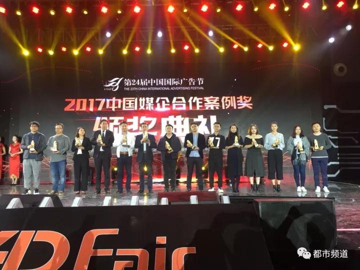 在2017中国广告长城奖·广告主奖之媒企合作案例奖颁奖现场,河南都市频道荣获6项营销大奖。都市频道团队凭借广告与节目的融合、专业的服务水准、勇于创新营销策划能力,获得“中国长城奖2017年度金伙伴奖”。