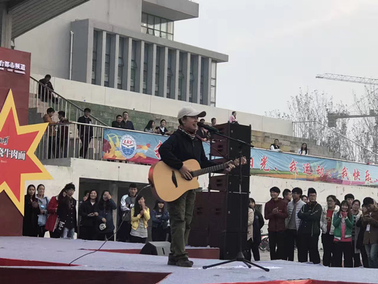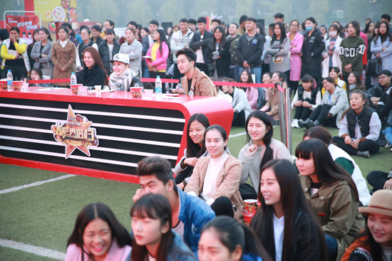 同学们的演唱也是各具创意,有斗篷哥的神秘斗篷秀,也有小情侣的情歌对唱,还有颇具创意的歌伴舞。还有一位韩较瘦的忠粉,更是借着演唱的机会大胆表白,高呼“韩较瘦,我爱你”,引得沸腾声一片。值得一提的是,一位年近60的奶奶身背吉他,驱车两小时赶到现场,演唱了陈楚生的民谣《姑娘》,她说,虽然年纪大了,但还是想登上舞台参与更多年轻人的节目,她的梦想并不会老去,她要以年轻的心,年轻的姿态和音乐一起摇摆。她的出现让现场掌声不断,欢呼不断,大家纷纷对她这种坚持梦想的精神竖起了大拇指。而第一季名嘴韩较瘦,第二季名嘴静静带来的劲歌热舞更是将活动推向了高潮。