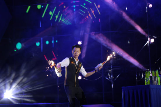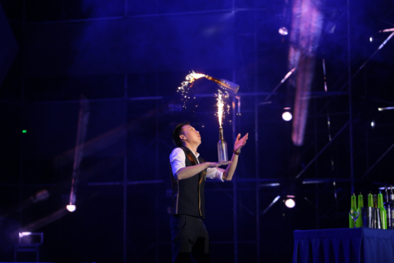 所谓压轴狂欢,是台下观众的饱满热情—花式调酒更美味,台上台下齐欢乐,调酒师现场表演花式调酒,台下观众有眼福更有口福。