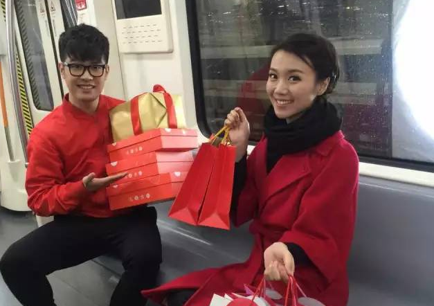 开心购物(李琳和刘航),坐上地铁奔家去。