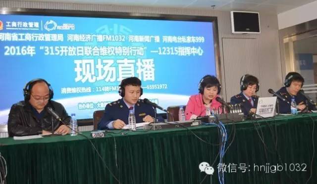 今年“315”,河南经济广播创新节目形式,联合河南新闻广播、私家车999 进行了并机直播。昨天(3月14日)上午9点至11点,并机直播2016年“315开放联合维权特别行动”特别节目顺利进行;直播现场省工商局进行了权威发布,为大家第一时间带来我省2015年315投诉权威信息!