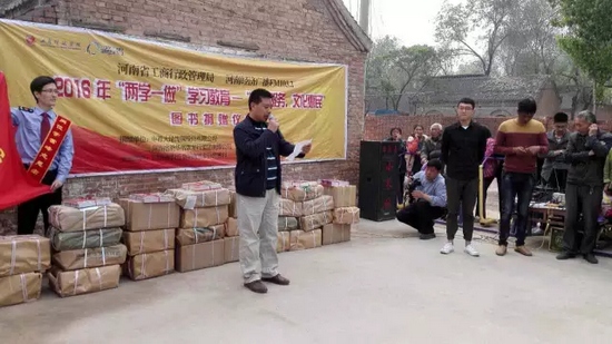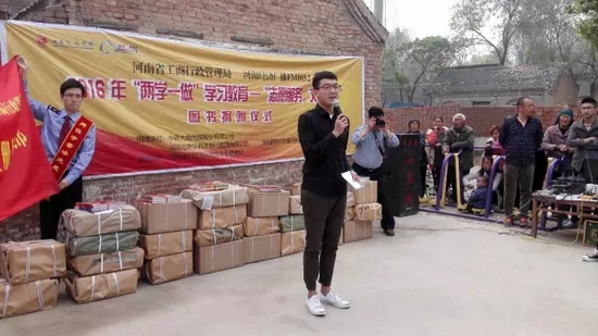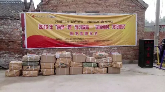今天,河南省工商局联合河南经济广播FM1032开展“两学一做”志愿服务文化惠民图书捐赠活动,来到封丘县荆隆宫乡孙蔡寨村。