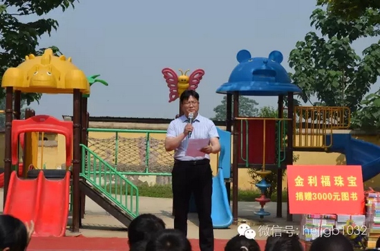 县里领导和《知道不知道》主持人鹏哥纷纷上台致辞,金利福珠宝和中铁七局集团电务工程有限公司也进行了图书的捐赠!