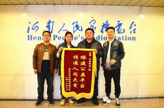 河南经济广播《读书吧!少年》第二季在9月3日走进了禹州市花石镇观音堂小学,时隔一月有余,禹州市花石镇观音堂小学的校长王变变女士也对我们的工作表示由衷的敬意,为了表达自己的感恩之心,不惜冒雨前来送上满含感激之情的锦旗。