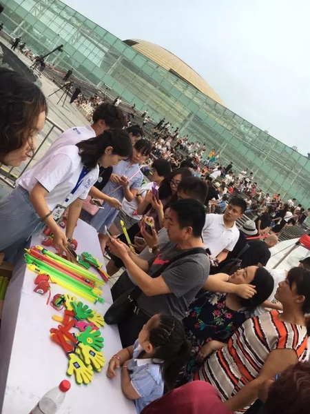 大家挥舞着手中的荧光棒和小巴掌