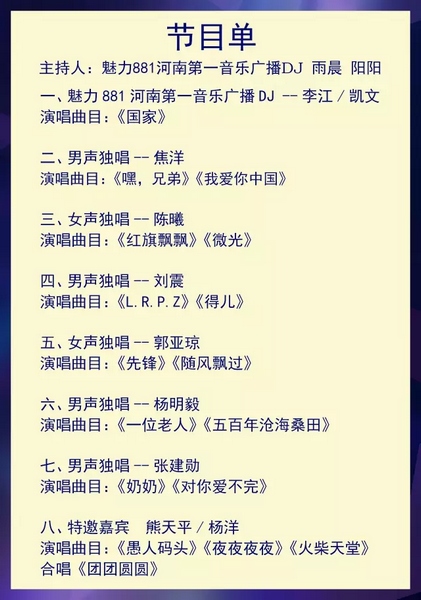 活动主题:“魅力中原 音乐盛夏”大型广场消夏音乐季第四专场原创新生代