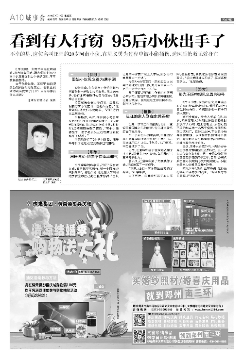 8月9日晚,河南信阳籍青年汪旺在东莞南城挺身而出制止小偷扒窃,不料被疯狂的歹徒持刀捅伤,经抢救无效不幸身亡。