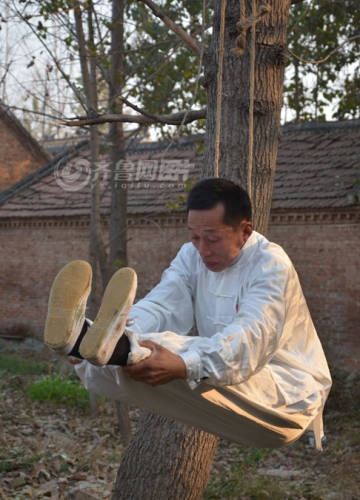 习武已经成为程浩良生活中的一部分,他常在小树林里练习他的独门绝技“仙人挂画”,令人惊叹。